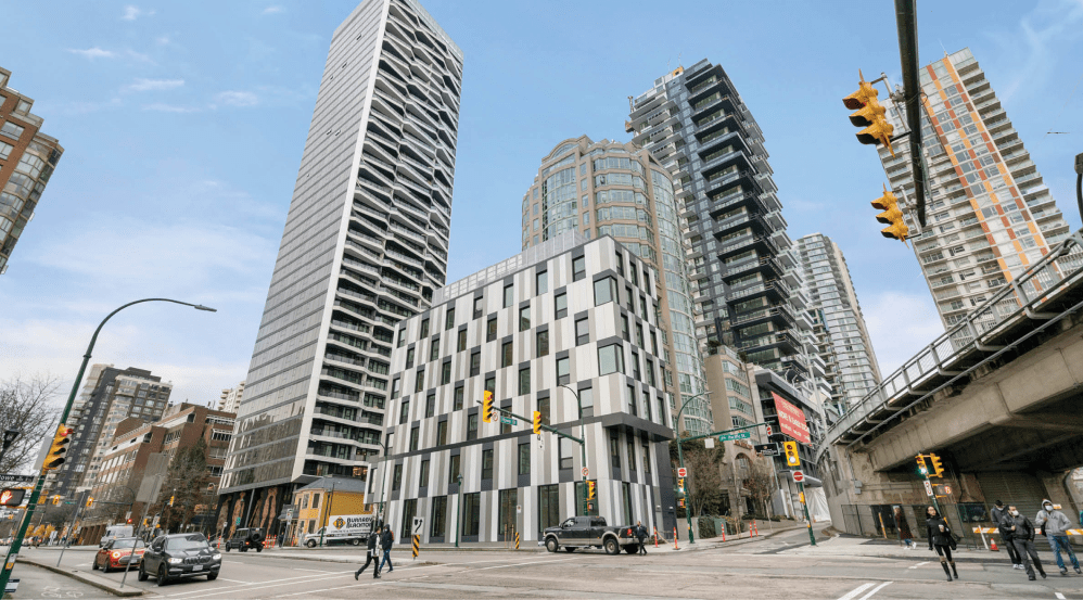 The Artist Hub on Pacific Street in Vancouver, British Columbia, is an excellent example of a new-build passive design project that reflects the needs and persona of the community it serves. The seven-story, 21,000-square-foot (1,950 sq m) building is an all-electric, near-zero-emissions facility, fitted with an electric air source heat pump to efficiently deliver domestic hot water, along with space heating in the winter and cooling in the summer. As well as adhering to many other Passive House design principles, the award-winning facility provides real-time energy-use data to inform development of future sustainable urban buildings in the region.