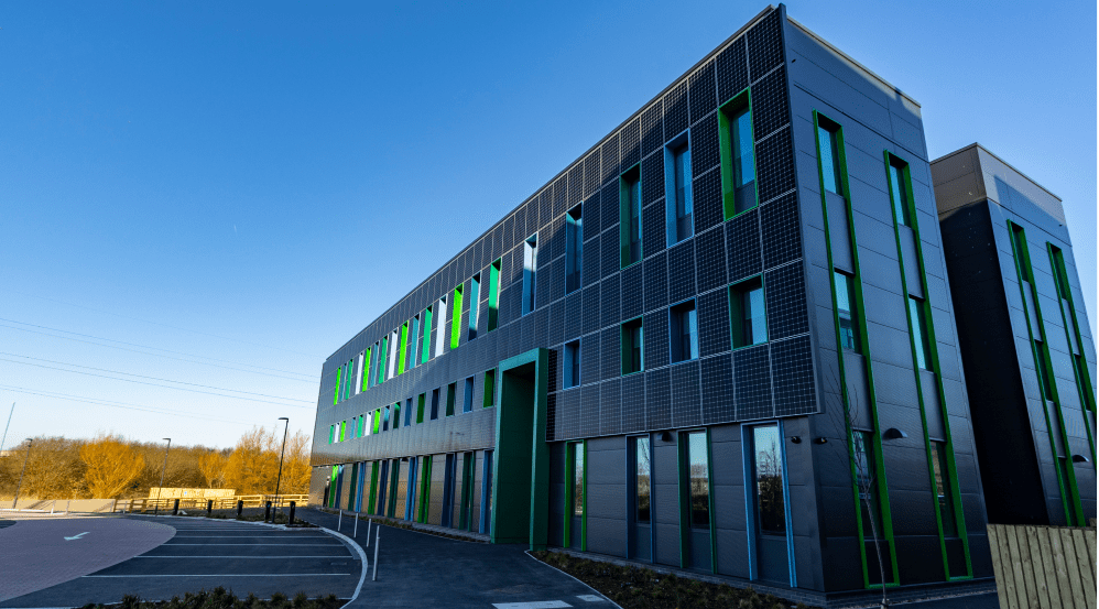 The design and construction of the Bay Technology Centre leveraged net zero design techniques and technologies to create Wales’s first energy-positive commercial building (Courtesy Morgan Sindall).