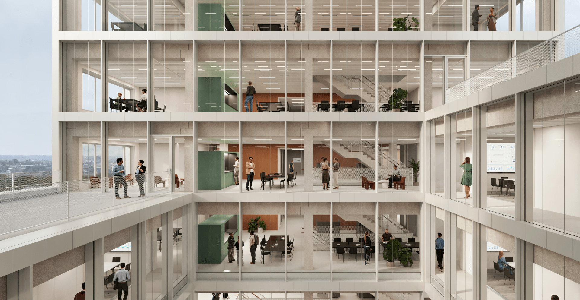Le projet prévoit 1 000 postes de travail flexibles selon le principe du « Smart Workplace ». Espaces ouverts, bureaux de projet, bibliothèques et espaces de rencontre créatifs offrent un cadre de travail moderne et inspirant. Le « marketplace » central avec restaurant deviendra un véritable lieu de rencontre pour collaborateurs et visiteurs. Grâce à une conception acoustique réfléchie, un climat intérieur optimal et une abondance de lumière naturelle, IMEC 6 offre les meilleures conditions de travail à ses collaborateurs.
