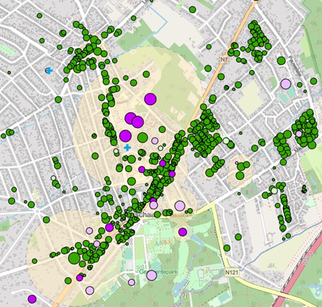 C'est pourquoi nos cartes de zonage thermique prennent également en compte les regroupements de chaleur. Il s'agit de concentrations de gros consommateurs de chaleur qui peuvent former le cœur d'un réseau de chaleur. Ces regroupements de chaleur peuvent se trouver dans une zone mixte où un réseau de chaleur est combiné à des solutions individuelles de pompe à chaleur pour les plus petits bâtiments. Cette approche permet de se concentrer d'abord sur ces zones où, avec un nombre limité de gros consommateurs, un réseau de chaleur financièrement viable peut être réalisé.