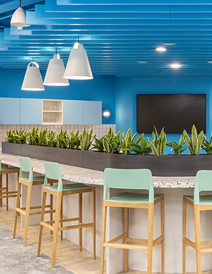 我们在工作场所设计方面的解决方案与客户的业务目标和愿景保持一致,将物理空间重新构想为支持员工工作方式的动态环境。我们打造能够促进和提升协作与连接的空间。